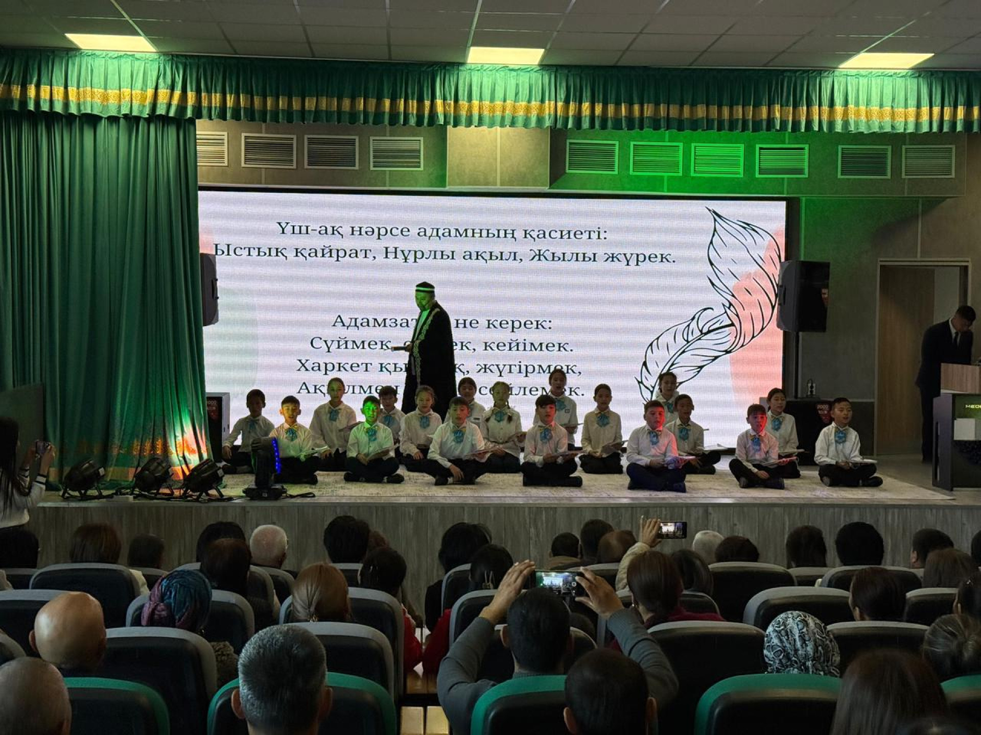 В завершение праздника ученики представили театральную постановку, посвященную 180-летию Абая, читали стихи и выступали с песнями. В фойе школы была оформлена интерактивная зона "Стена будущего", где гости могли оставить свои пожелания.