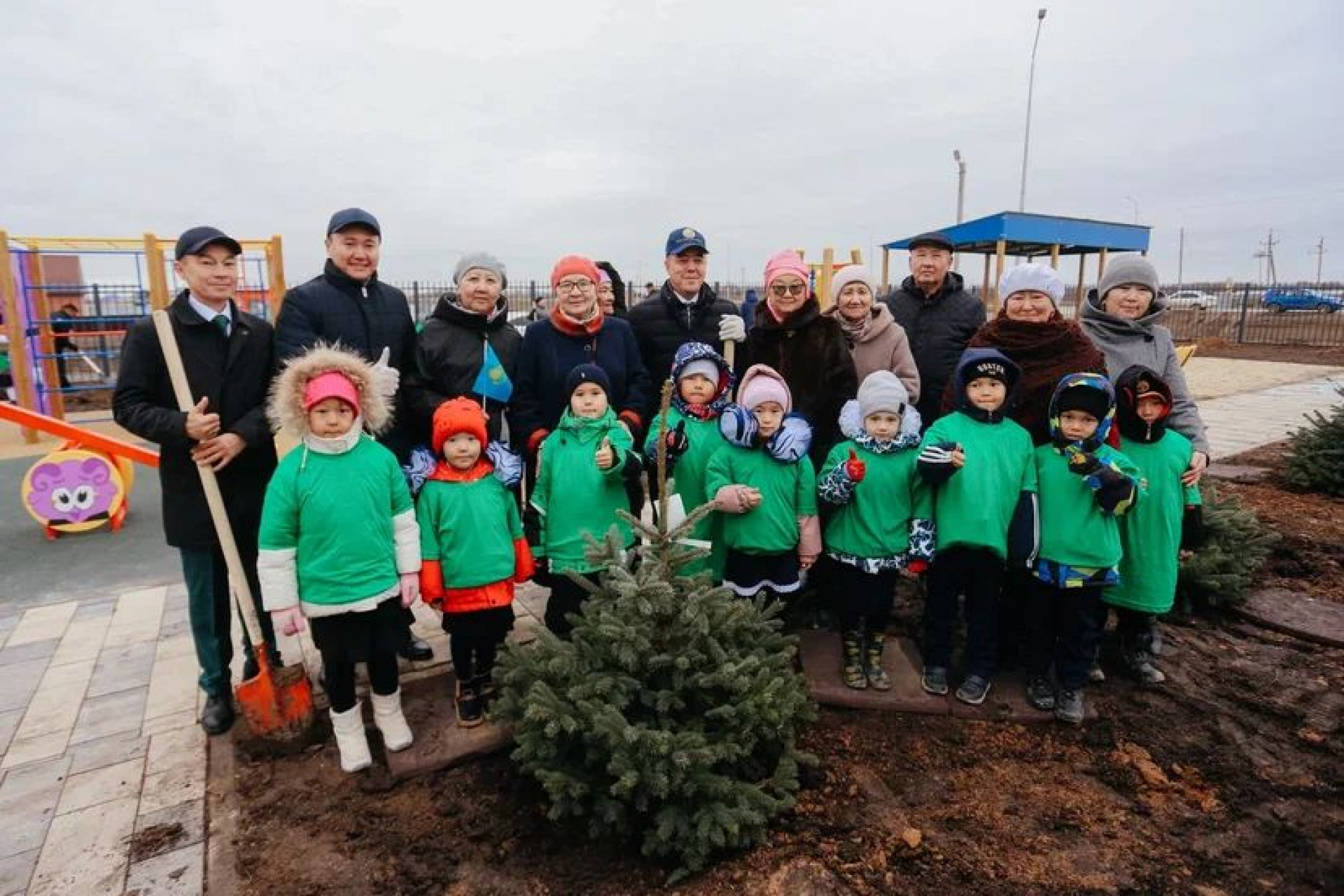 По завершении официальной части церемонии аким области совместно с первоклассниками посадил саженцы деревьев на территории новой школы.