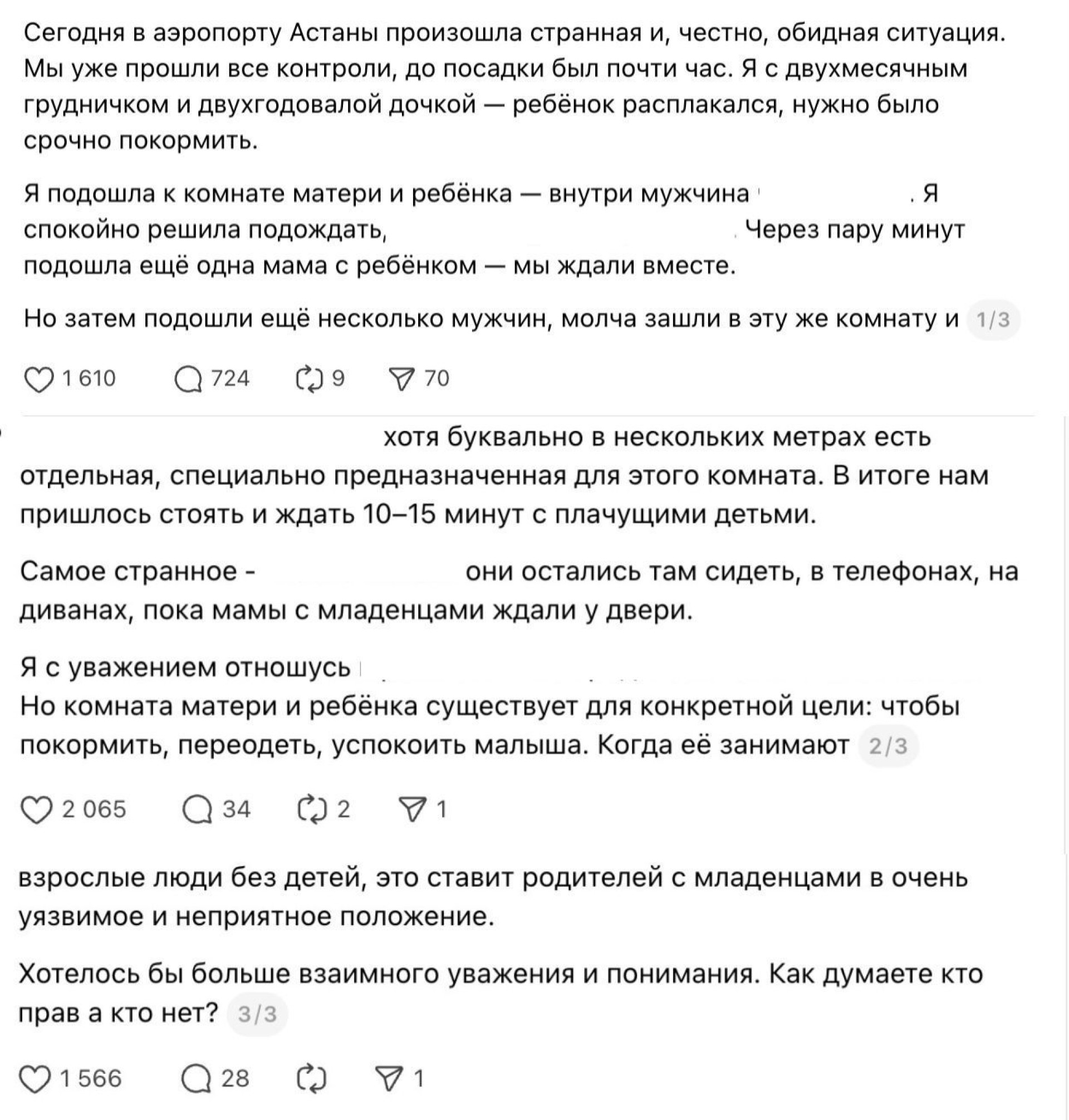 Как в аэропорту Астаны за комнату матери и ребёнка разгорелась буря споров