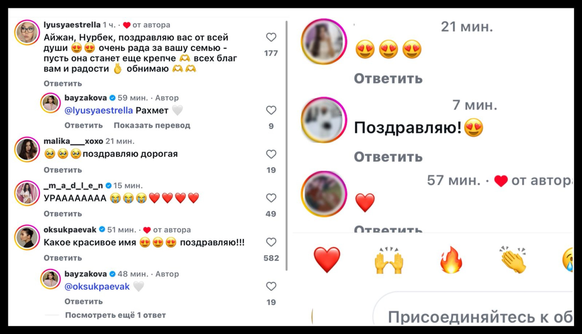 Подробности о рождении дочери Айжан пообещала раскрыть позже. В настоящее время она принимает поздравления от своих подписчиков и друзей.