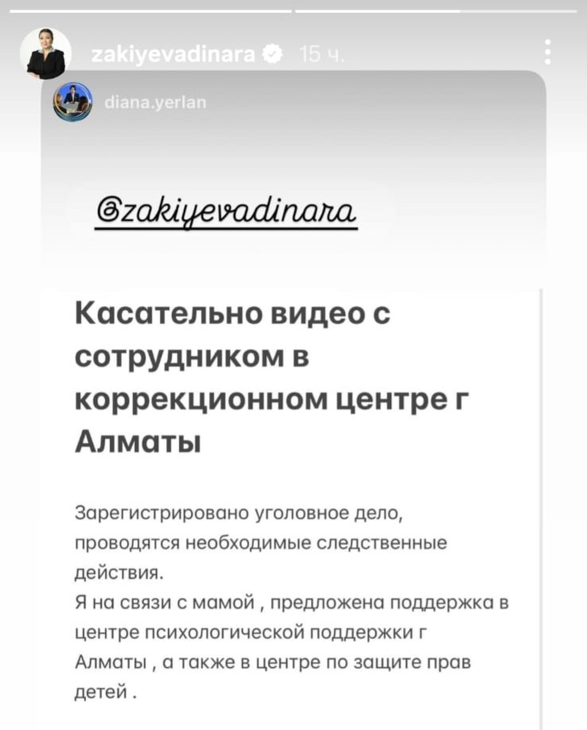 Детский омбудсмен Динара Закиева прокомментировала ситуацию, предложив матери пострадавшего ребенка помощь в Центре психологической поддержки и в Центре по защите прав детей.